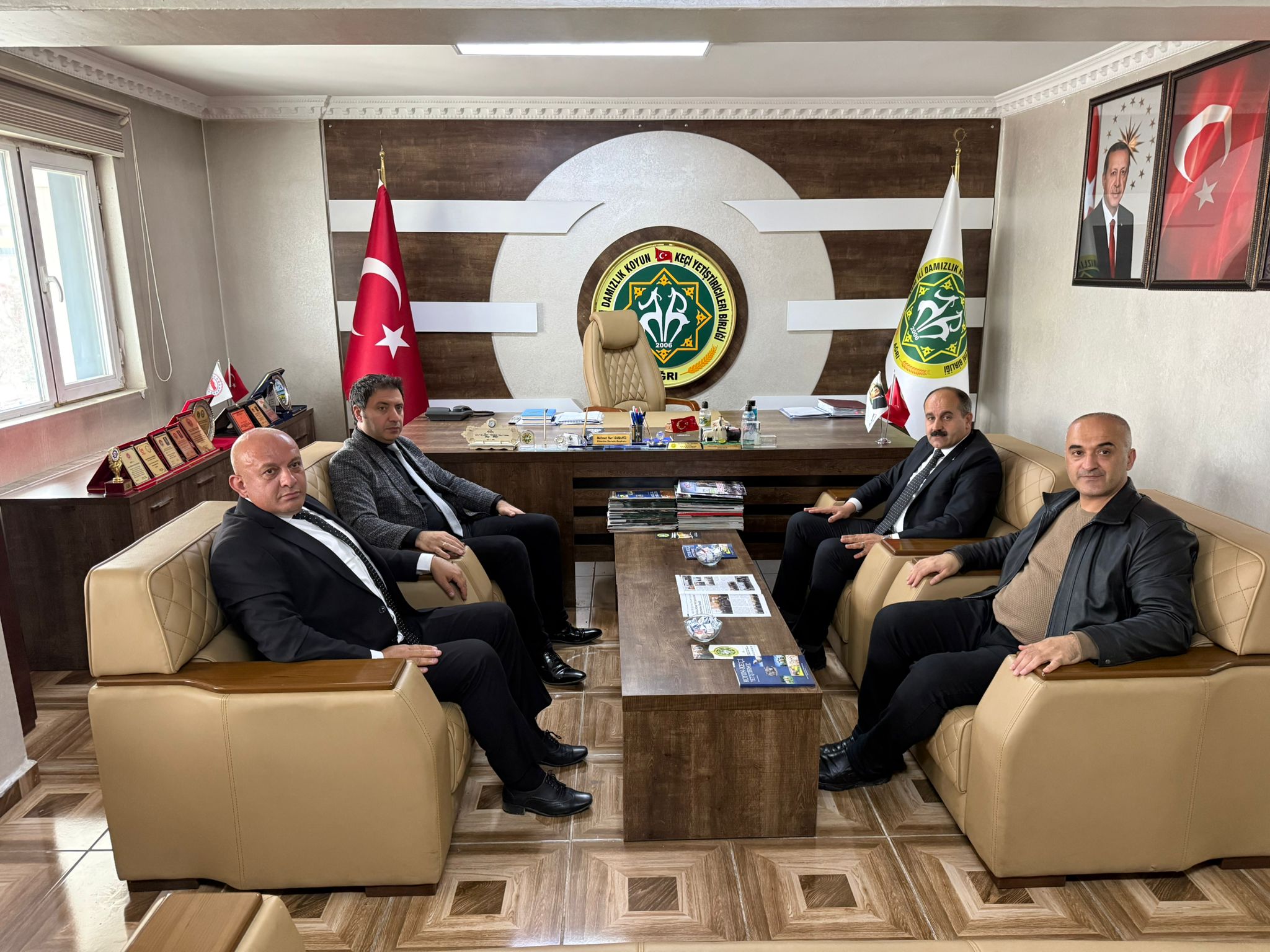 Ağrı Şeker Fabrikası Müdürü Kürşat Erdoğan ve Şeker Fabrikası Ziraat Müdürü Hakan Deligöz bugün TÜRKYED Genel Sekreteri ve Ağrı İli Damızlık Koyun Keçi Yetiştiricileri Birliği Başkanı Mehmet Nuri Samancı`yı makamında ziyaret ettiler.